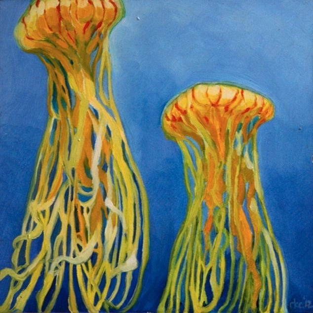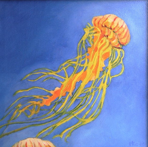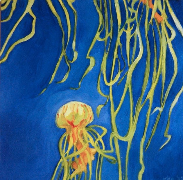 Jellyfish triptych (2012), oil on board, (3) 6x6 in