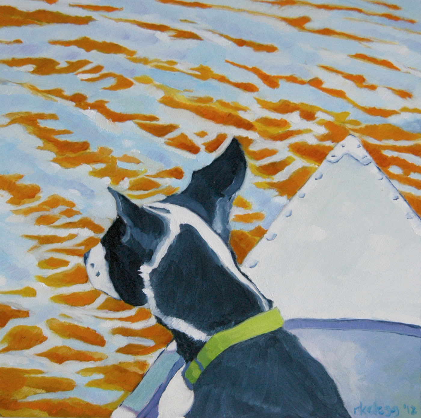 Bird Dog in Canoe (2012), oil on board, 6x6 in